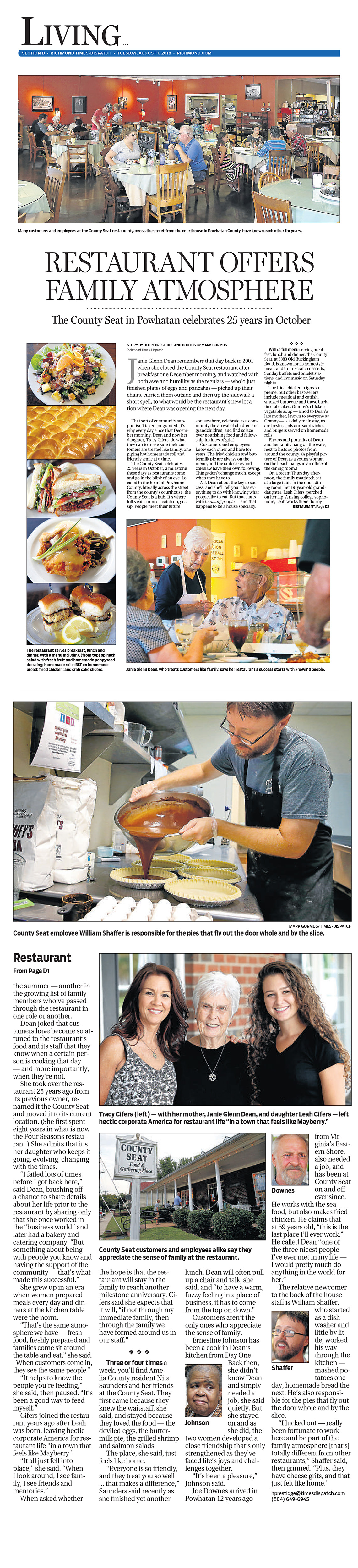 Article from Richmond Time Dispatch - August 2018